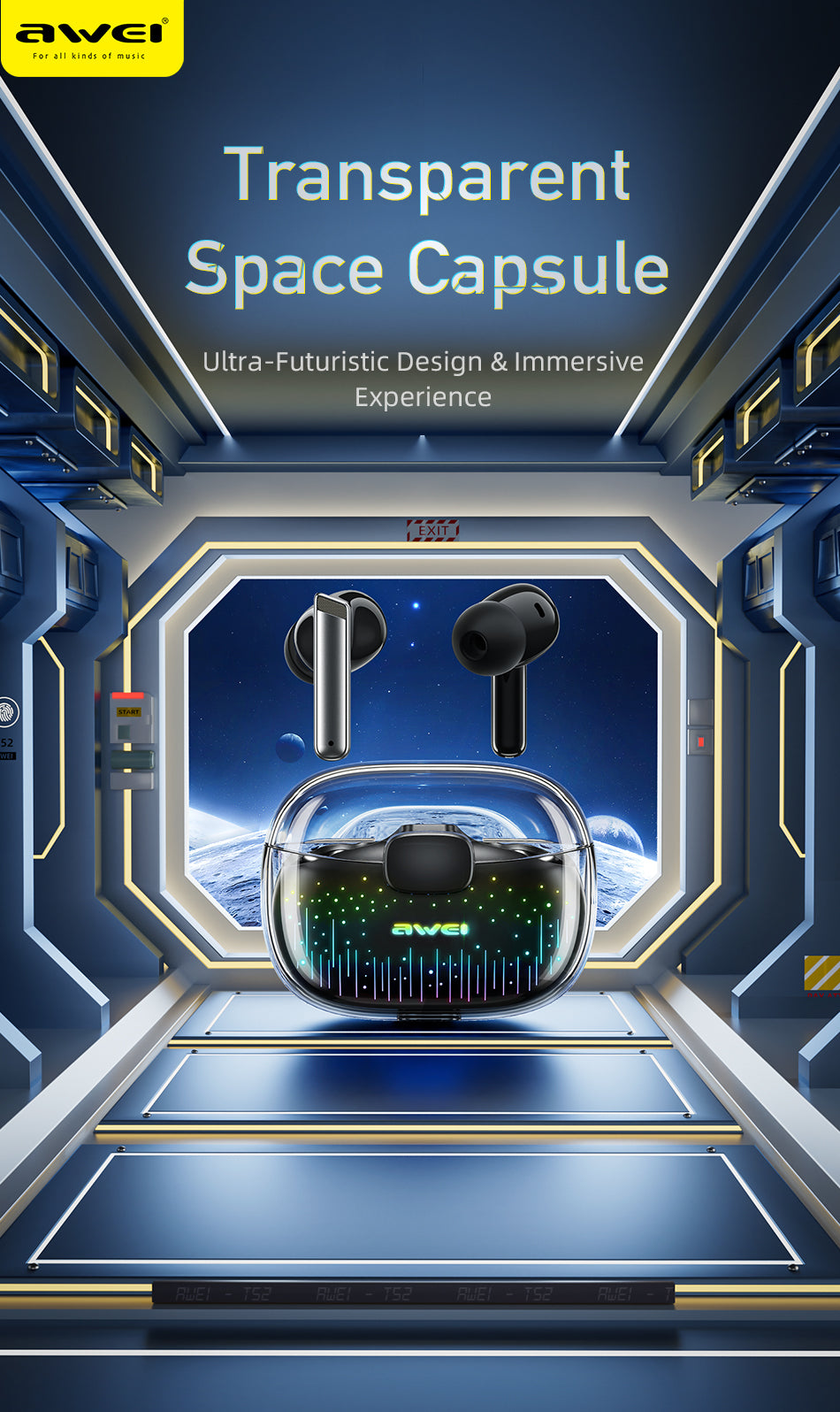 Auriculares inalámbricos Awei T52pro con Bluetooth 5.3 y luz de respiración colorida